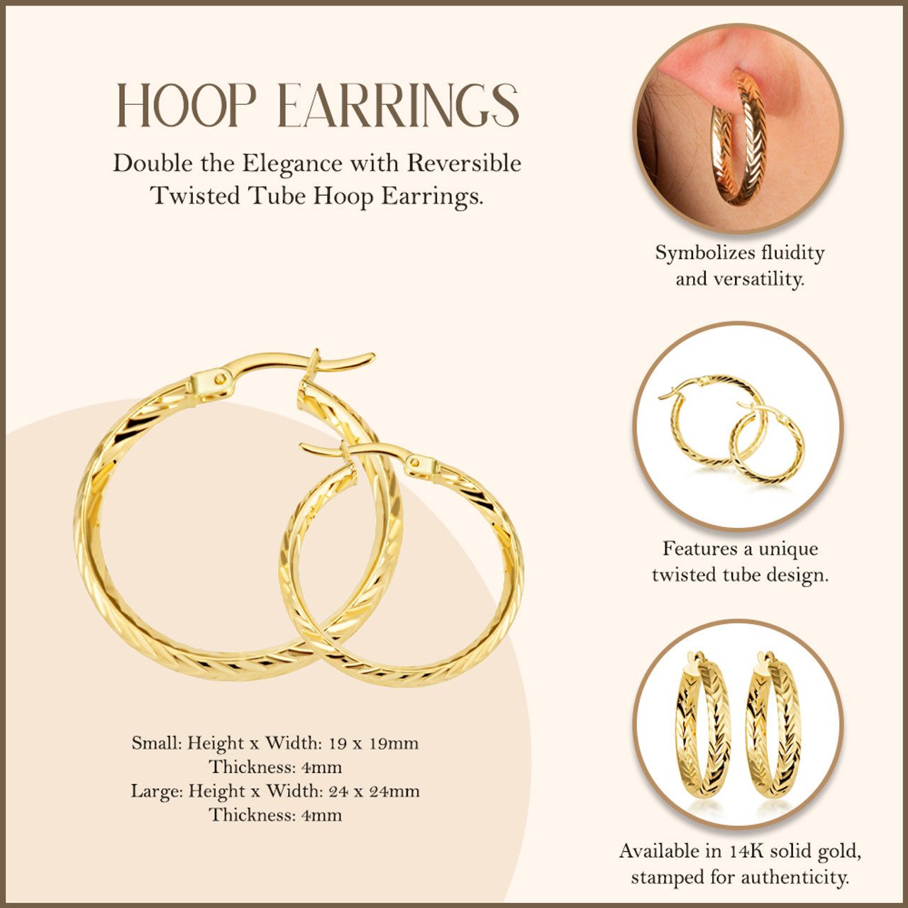 14K Yellow Gold Reversible Twisted Tube Hoop Earrings