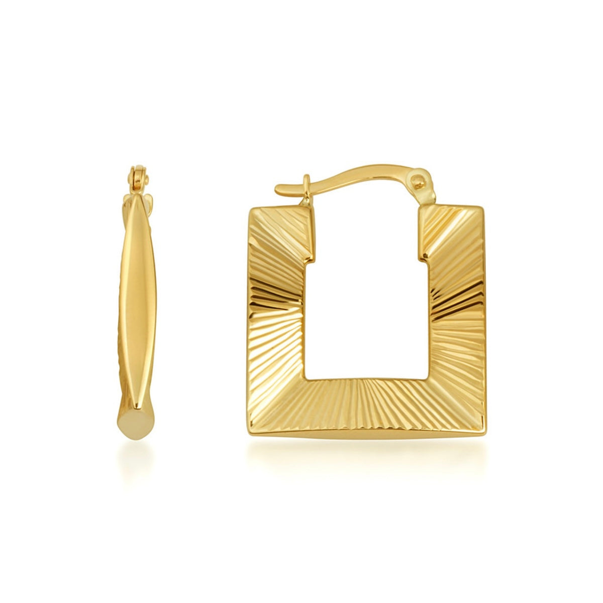 14金ダイアモンドカットが施されたストライプテクスチャーのスクエアフープピアス